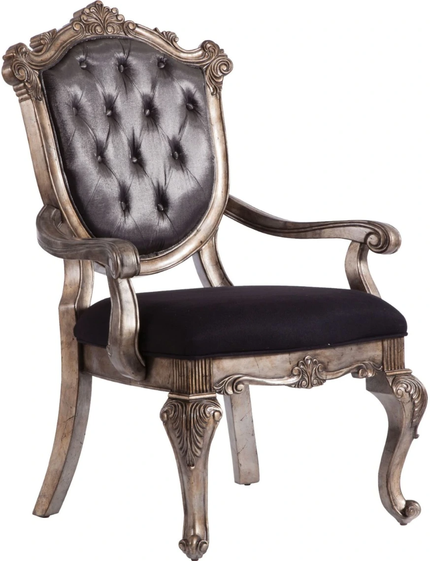 The Chantelle Arm Chair combines comfort, elegance, and timeless design. With its antique platinum finish, luxurious upholstery, and intricate detailing, this chair adds a regal and sophisticated touch to any room, making it an ideal choice for those looking to elevate their space with a statement piece.Read More