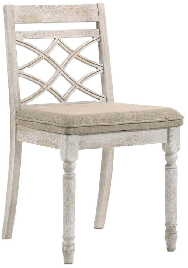 Timeless and charming, the Cillin side chairs lend a cottage chic vibe with an antique white finish frame and fabric-padded seats. Pair these chairs alongside French country decor in a rustic-style dining room to add some bright cheerfulness.Read More