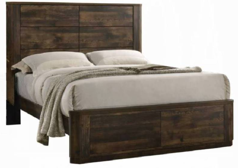 The headboard is accented with raised molding and is finished in a timeless rustic walnut. The bed's clean line design will go with various styles of case good finishes and will become the focal point for your bedroom.