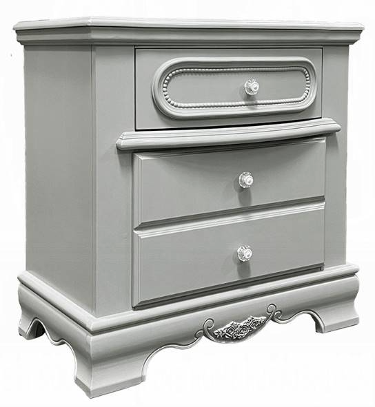 Fulfill your little girl's dream of being a princess by creating a royal retreat with the Flora nightstand. This frilly nightstand features a scalloped base with a beautiful floral motif detail for an added girly touch. Three drawers ensure there is enough storage for all their tiaras and accessories.Read More