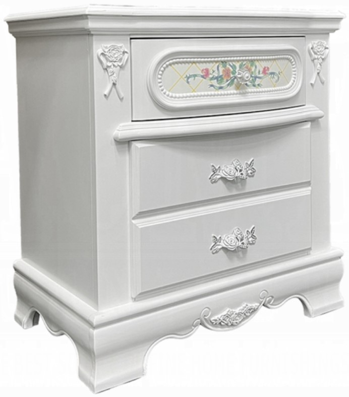 The Flora nightstand features beautiful floral motif decals, rope moldings on the drawer fronts, and decorative profiled crown molding on all cases. Providing a much-needed storage solution for all your little one's clothing and toys with its two ample drawers.Read More