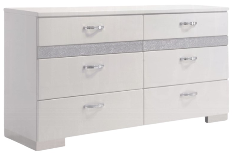 The ACME Furniture Naima II White Dresser combines style and functionality with its sleek design and bright finish. It features six spacious drawers and two hidden jewelry drawers, offering ample storage while maintaining a clean, refined look. A perfect blend of practicality and elegance for any bedroom.Read More