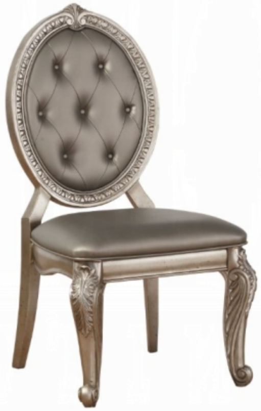 The ACME Furniture Northville 2-Piece Side Chair Set combines classic elegance with modern comfort. Featuring an antique silver frame, these chairs are upholstered in soft fabric with a padded seat and a gracefully designed backrest. Perfect for enhancing dining spaces, they add a refined touch to any setting.Read More