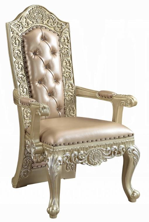 The Vatican Dining Room Collection brings dreamy romantic accents in classic design into your traditional dining room. Intricate trim features vigorous curves of scrolling vines and floral elements, while a champagne gold finish adds a touch of synthetic leather and sophistication.Read More