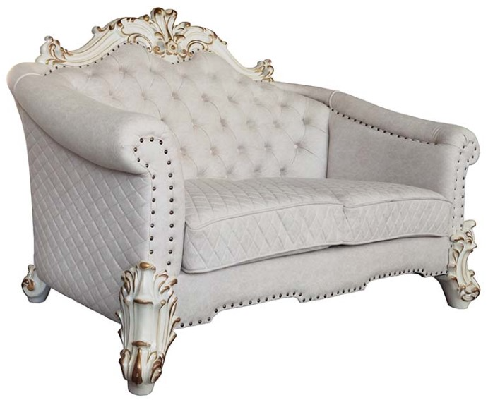 The ACME Furniture Vendome II Antique Pearl/Two-Tone Ivory Loveseat exudes elegance and classic charm. Upholstered in a luxurious two-tone ivory fabric with an antique pearl finish, it features intricate carvings and rolled arms. Perfect for refined living spaces, this loveseat combines timeless design with plush comfort for a truly sophisticated look.Read More