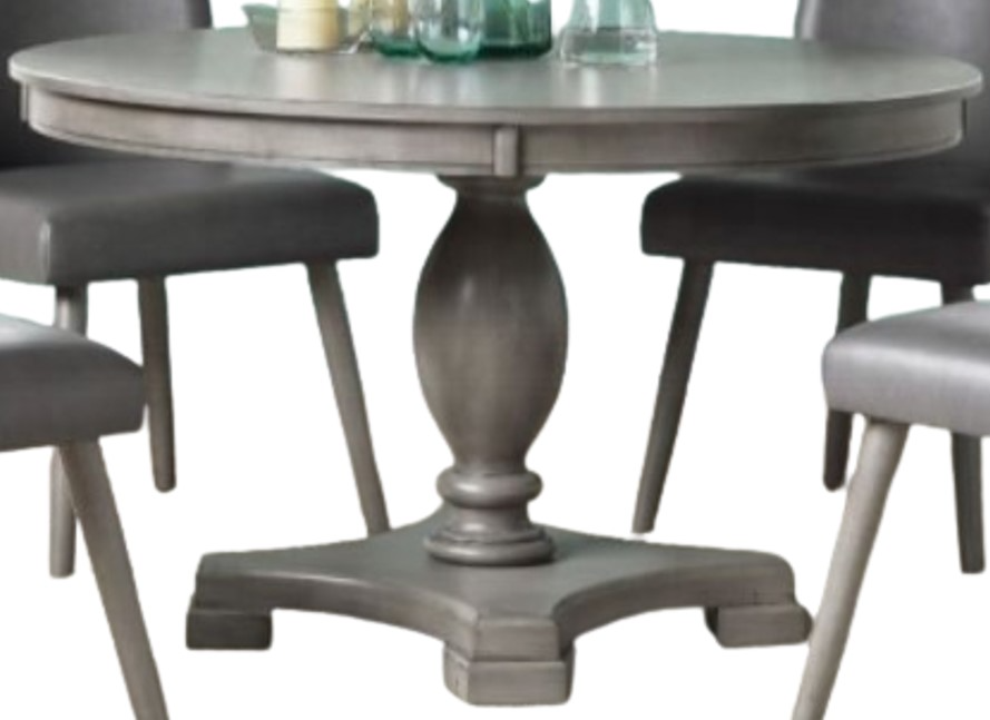 Keep everyone comfortable with the contemporary yet casual Waylon dining group. This beautiful round table features a wood top and turned pedestal base in a warm gray oak finish. Allowing seating for four people, this wonderful set is ideal for your kitchen or small dining space.Read More