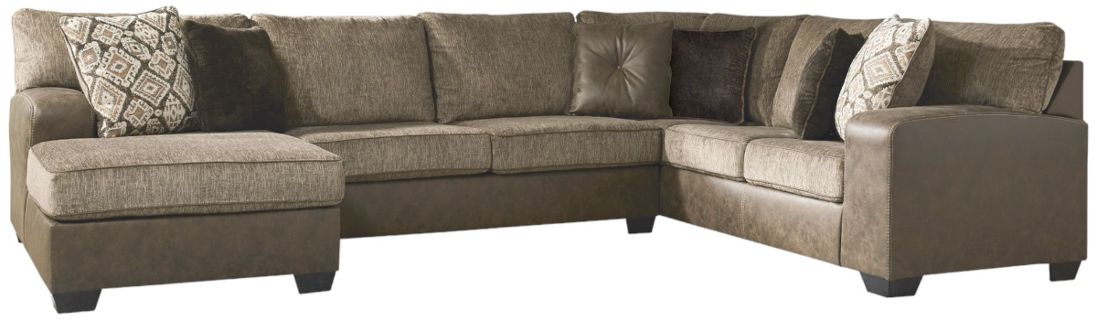 Includes 3 pieces: left-arm facing corner chaise, armless loveseat and right-arm facing sofa