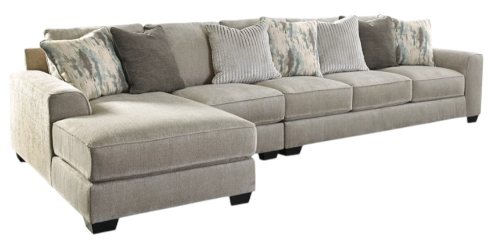 Includes 3 pieces: left-arm facing corner chaise, armless chair and left-arm facing sofa