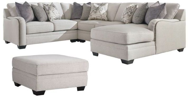 Includes 4-piece sectional (with right-arm facing corner chaise, armless loveseat, left-arm facing loveseat and wedge) and ottoman with storage