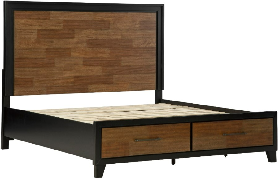 Experience the captivating allure of this California king panel storage bed, an effortless blend of casual and refined aesthetics. Its two-tone finish combines satin black with a rich brown wood tone for a modern, relaxed vibe that you'll love waking up to. Perfectly suited for your contemporary home, it offers two spacious drawers.Read More