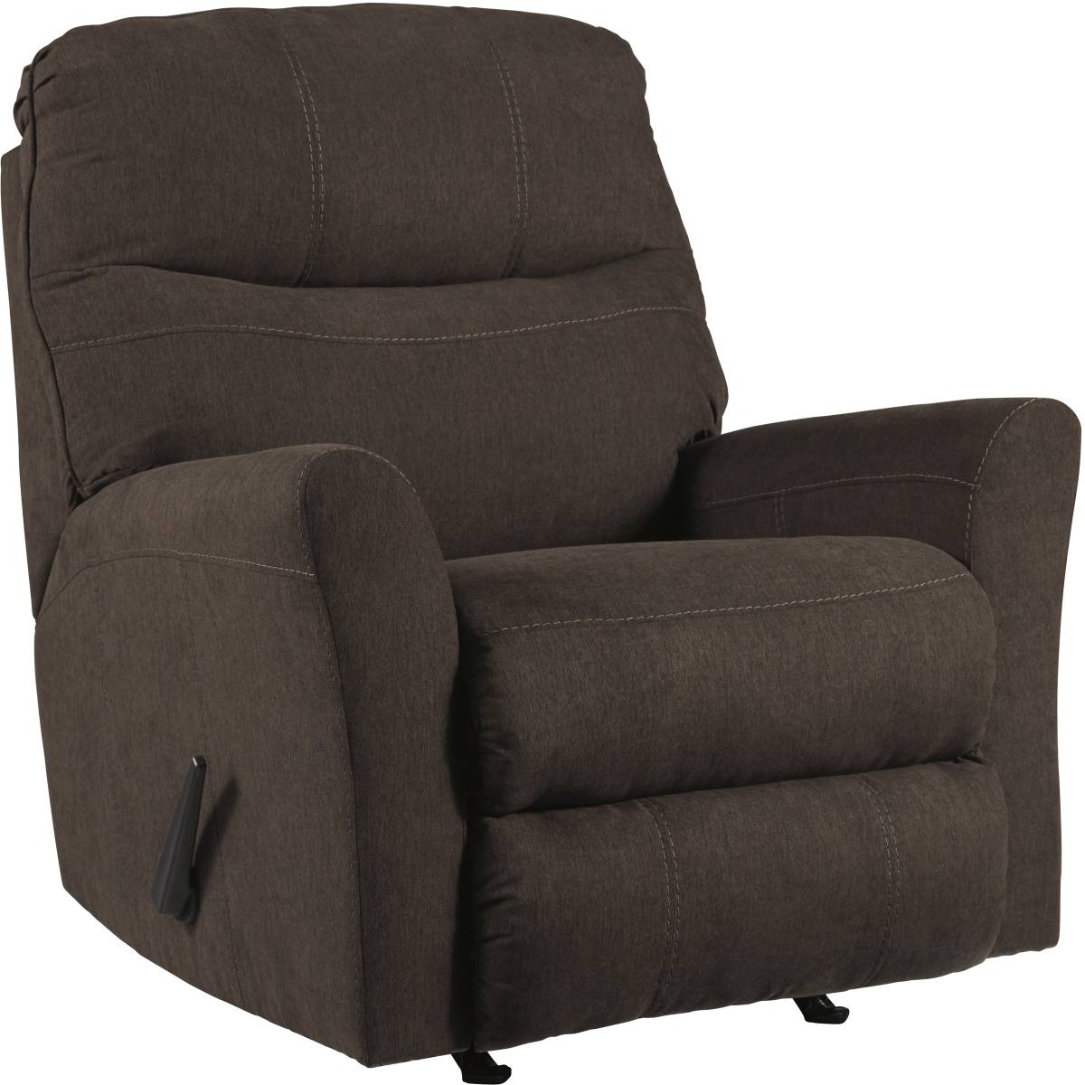 Destination: relaxation oasis. Elevate your design aesthetic with this rocker recliner. Plush yet structured cushioning packed with metro modern flair, this recliner is where sophisticated style meets everyday comfort. Recline in infinite positions of soft comfort with one pull.Read More