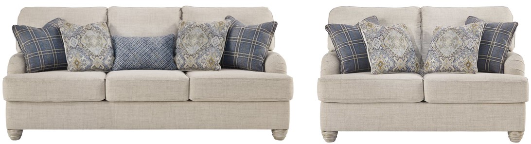 Don’t be shy—take a seat on this farmhouse-style loveseat. Dressed in a modern and relaxed linen-weave upholstery, it’s a luxurious complement to rustic accents with its light and airy palette and elegantly turned feet. Adorned with the plaid and patterned toss pillows, it's a picture-perfect finish to any shabby chic or countryside living room.