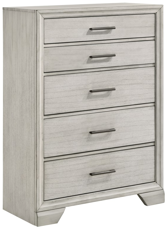 The Jaymes Chest offers a sleek design that enhances any bedroom decor. With its clean white mist finish, this chest exudes elegance, perfect for creating a bright and refreshing ambiance. It features spacious drawers and stylish metal handles for easy access.Read More