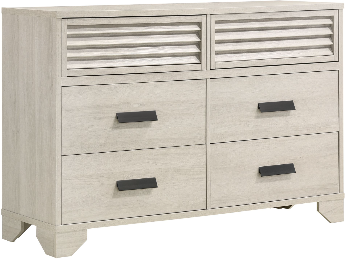 The Sarter collection dresser is a stylish and functional piece of furniture that adds a touch of elegance to any bedroom. With its pristine white finish, this dresser exudes a sense of freshness and purity, creating a bright and inviting atmosphere in the room.Read More