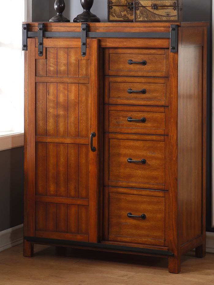 Legends Furniture Industrial Chest with false bottom hidden storage and felt lined top drawersRead More