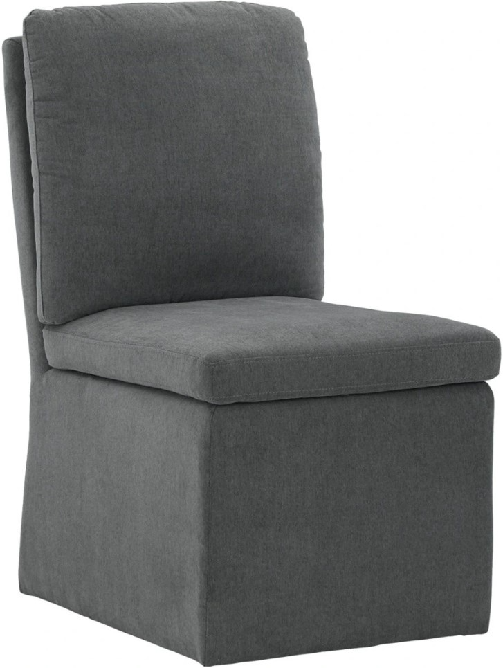 Enjoy home-cooked meals in style on this urban contemporary dining chair. Add it to a dining table or use as extra seating for impromptu entertaining. Covered in a warm charcoal gray woven polyester fabric with a comfortably cushioned seat and back.Read More