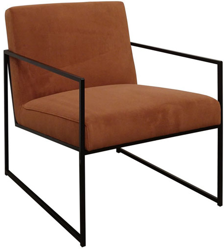 Dress up your reading nook or den with the decidedly contemporary stylings of this accent chair. Spice-hued velvet fabric provides a pop of soft color while remaining reserved and refined in appearance. A streamlined metal frame polishes off the posh design.Read More