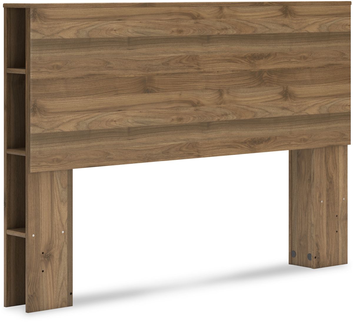 Dare to take minimalism to the max. This queen bookcase headboard has a richly relaxed feel thanks to its honey brown finish over replicated wood grain. A space-efficient storage option, cubbies along the side ensure you can keep your favorite reads within reach. USB charging keeps up with your high-tech lifestyle. There's no doubt about it: This contemporary piece is sure to become a classic.Read More