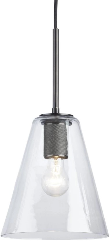 The clean, contemporary design of this pendant light is just the thing to add illuminating intrigue. The clear glass shade and black finished elements are a combination that is sure to blend in with any color scheme. Create a playful cluster, or use a single pendant to make a style statement in a small space.Read More