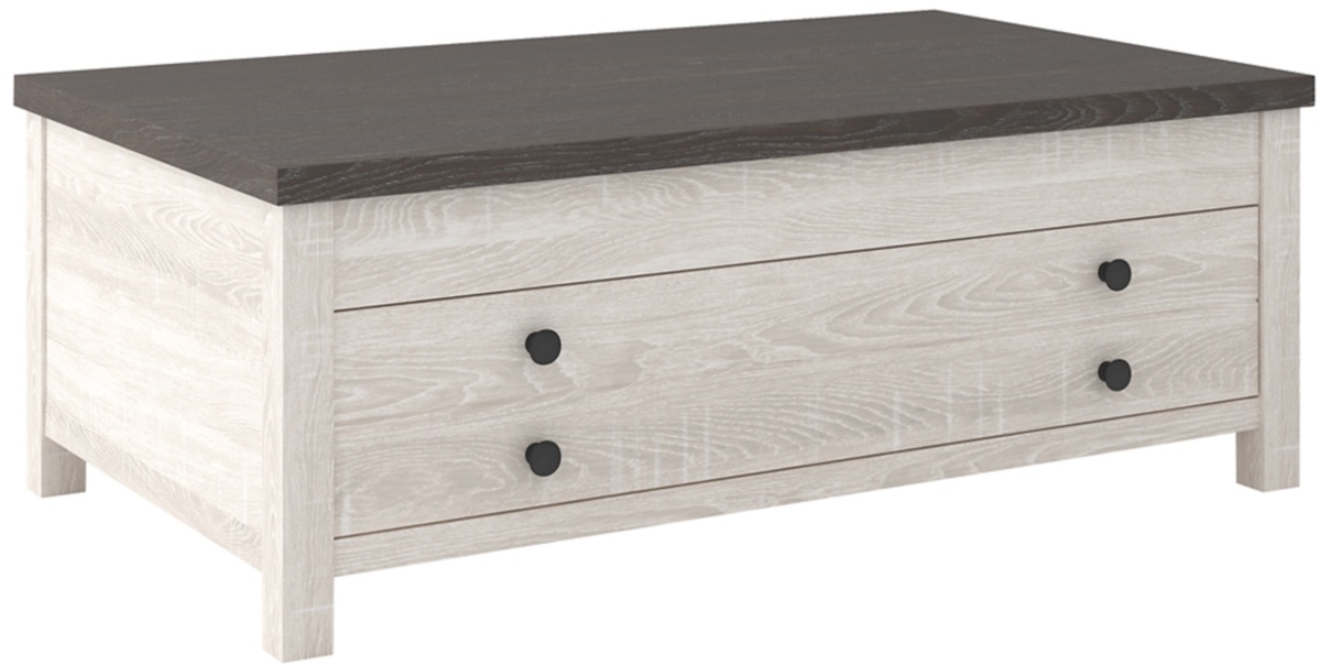 Raise the bar on modern farmhouse design with this versatile lift-top coffee table. Sporting a two-tone, gray and antiqued white color scheme and cross buck design, this table's handy spring-loaded mechanism brings the tabletop closer to you. This versatile table makes it easier than ever to eat, work or play from the comfort of your sofa. Assembly required for this product.Read More