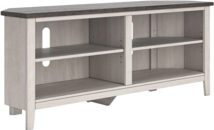 With its minimalist charm, this TV stand is right in tune with your relaxed approach to high style. Beautifully shaped to nestle into any corner, it’s well equipped with a flexible open-concept design and cutouts for wire management that enhance the clean-lined aesthetic. The look is ideal for modern farmhouse and contemporary settings.Read More
