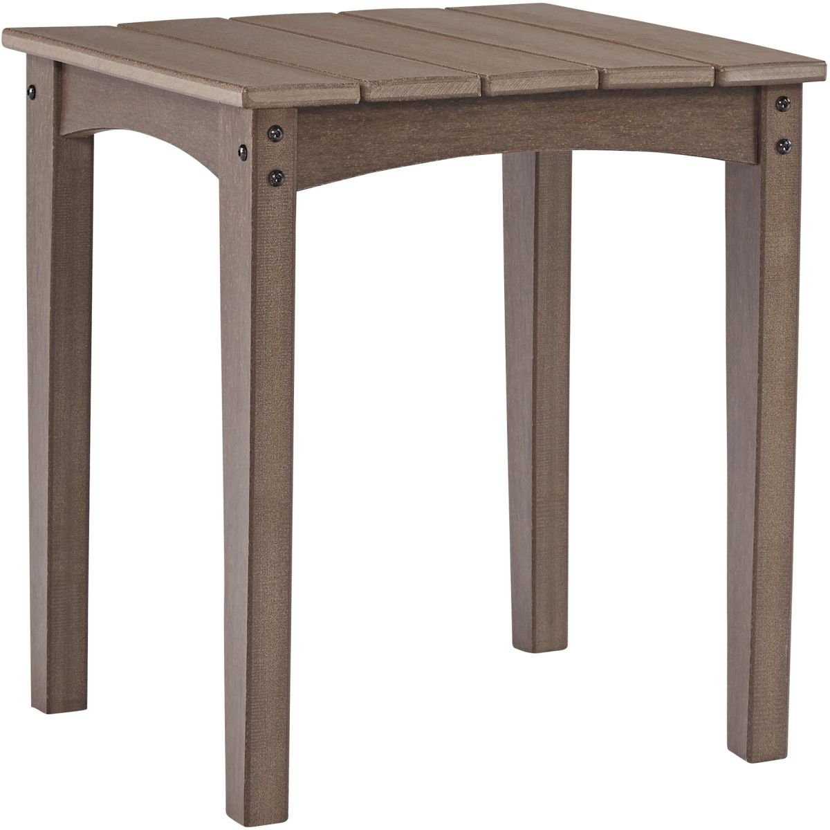 Get back to nature with the relaxed styling of the Emmeline outdoor end table. Crafted of MEGA-TUFF® HDPE material, it combines the exceptional durability and weather resistance you need with the “wood look” you love. Rest assured, the slatted tabletop sheds rainwater so you can enjoy alfresco living rain or shine.Read More