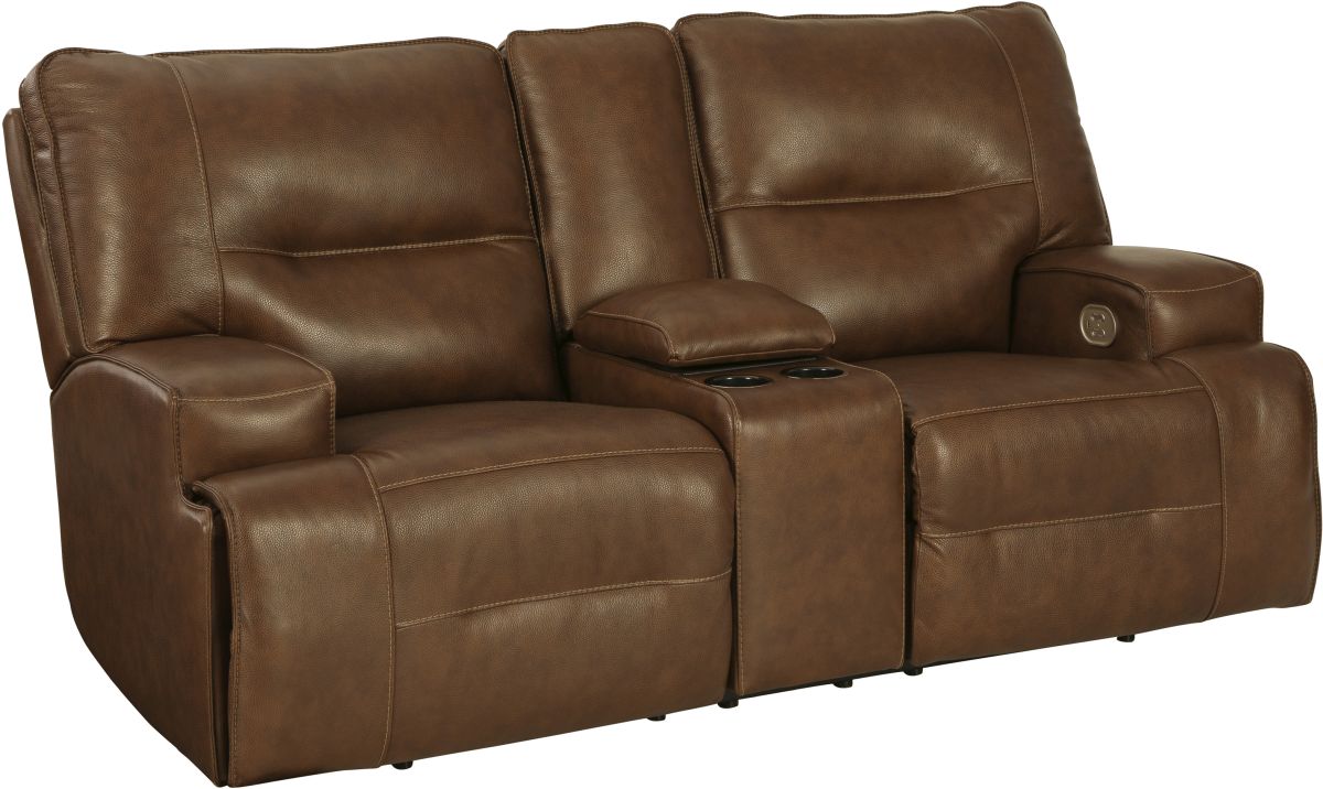 Master statement-making contemporary comfort with this power reclining loveseat. It displays a striking yet streamlined profile, with expertly matched leather and faux leather upholstery in an auburn hue balancing natural beauty and refined design. Adjustable headrests and USB charging polish off this richly crafted piece.Read More