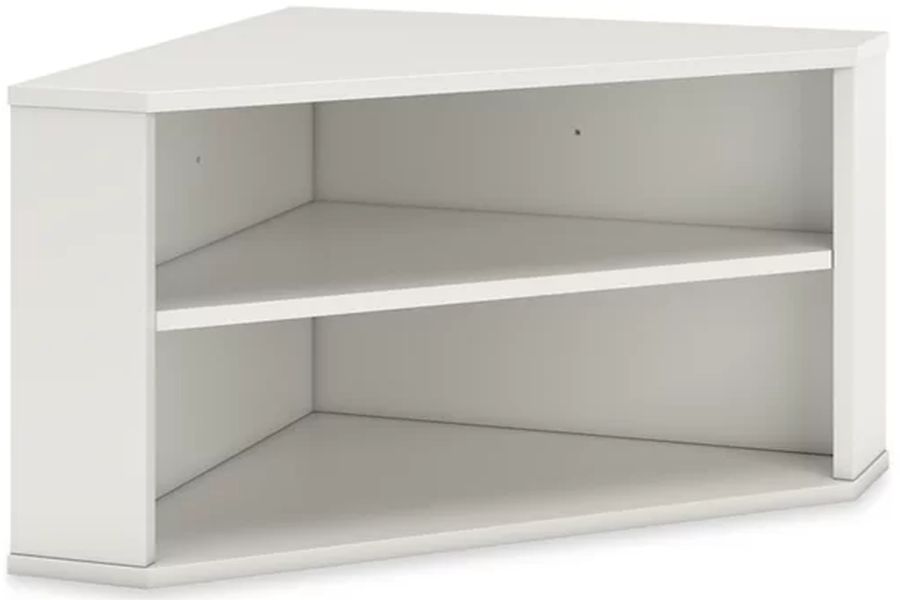 Clean-lined design takes center stage in this home office corner bookcase. Well-suited to small spaces, this bookcase leaves a small footprint as it seamlessly mounts onto corner walls. Two open shelves help store and display, while the crisp white finish suits a myriad of contemporary color palettes.Read More