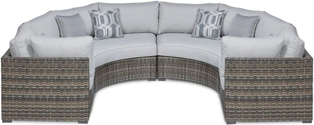 This cool, casual Harbor Court outdoor sectional will raise the comfort level and visual appeal of your outdoor living space. Its modular design can be reconfigured to suit your needs and keep a fresh look. Throw pillows are included for added comfort and a splash of color.Read More