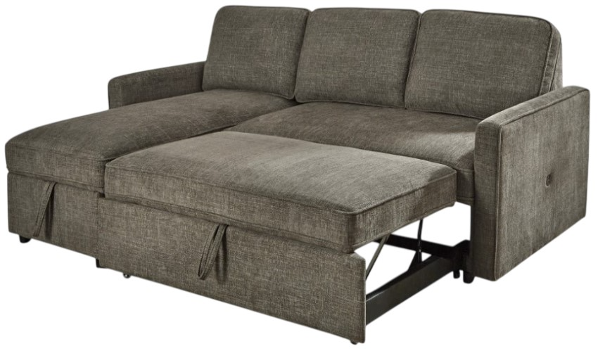 This sectional with pop up bed is an essential for small spaces and hosts with the most. The multifunctional piece is fashioned with dark gray upholstery that suits styles from transitional to modern. Its pop up bed provides extra sleeping space for guests or simply a spot to spread out on your own.Read More