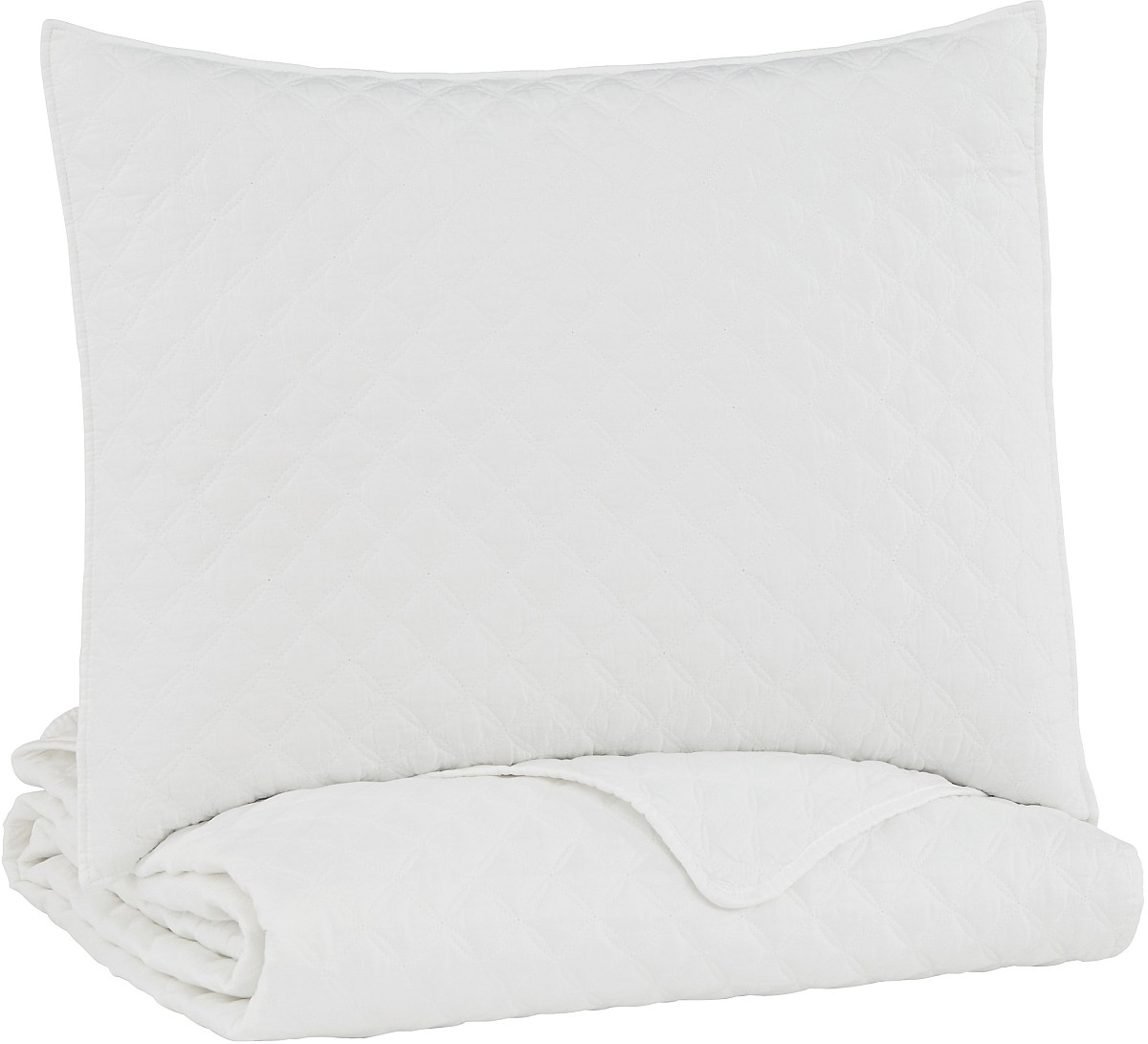 Relax and recharge with the Ryter coverlet set. It’s quilted diamond design in white stonewash is a look that complements just about any decor style. Touting casual-cool flair and a soft feel, jumping into bed is sure to be your favorite part of each night. 3-Piece Coverlet Set - Includes Coverlet and 2 Shams. Quilted Diamond Design in a White Stonewash. Polyester Microfiber Cover with Polyester Filling. Machine Washable. Due to the finishing process of this product, some variations may occur.