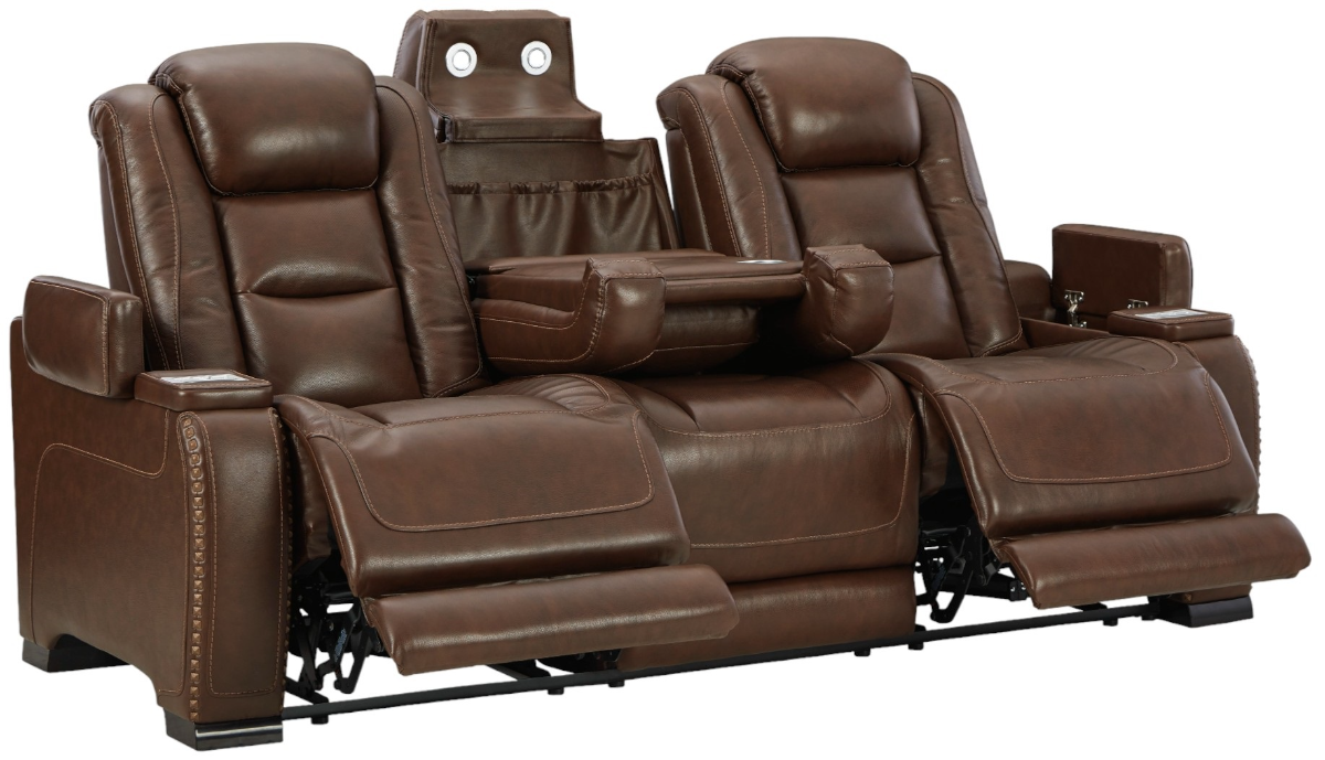 Reserved for him and made for her, this mahogany hued power reclining sofa delivers all the comfort and style you could ask for. Inspired by sports car interiors, the power seat features real leather in the seating area for your pleasure.Read More
