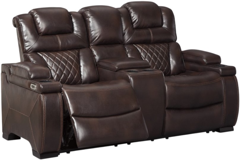 Your modern living room awaits with this power dual-sided reclining loveseat. Complete with practical faux leather upholstery, one-touch power controls, adjustable headrests and USB ports, it makes finding the best seat in the house a breeze. Cup holders and a storage console keep drinks, snacks and remotes close by.Read More