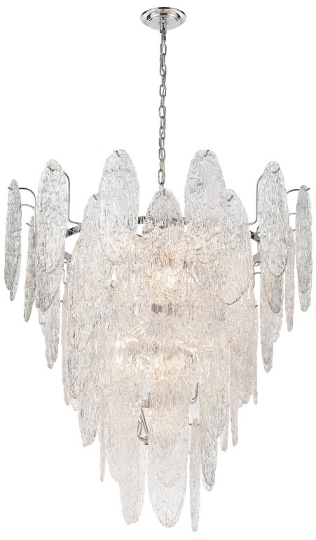 The Frozen Cascade collection draws inspiration from a pristine waterfall turned into a majestic ice sculpture. Sheets of textured glass are arranged in layers adding depth to its intentionally frazzled appearance. Finished in Polished Chrome.Read More