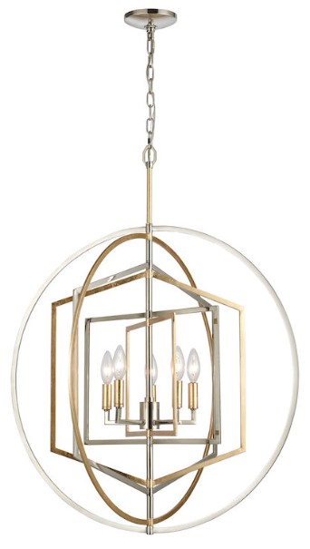 The Geosphere collection has a unique array of geometric shapes which nest inside each other. The shapes on the chandeliers can be rotated to a desired position after installation. A parisian gold leaf finish is accented with polished nickel for a luxurious presentation.Read More